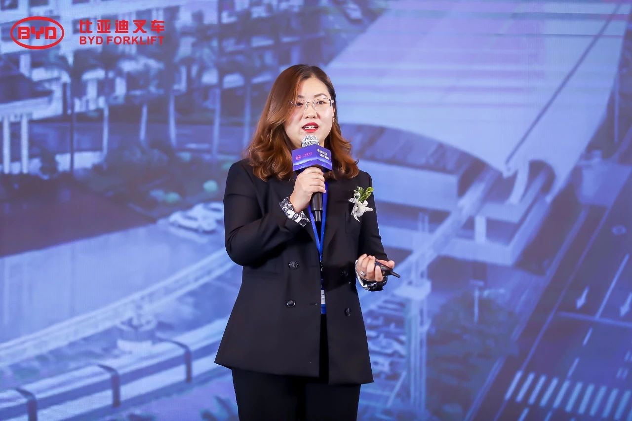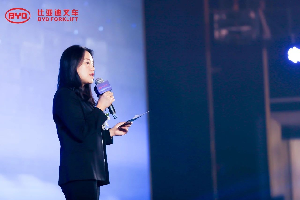 大會(huì)現(xiàn)場(chǎng)“高朋滿座,濟(jì)濟(jì)一堂”,比亞迪叉車(chē)國(guó)內(nèi)銷(xiāo)售總監(jiān)陳麗萍女士首先向在座來(lái)賓致歡迎辭。