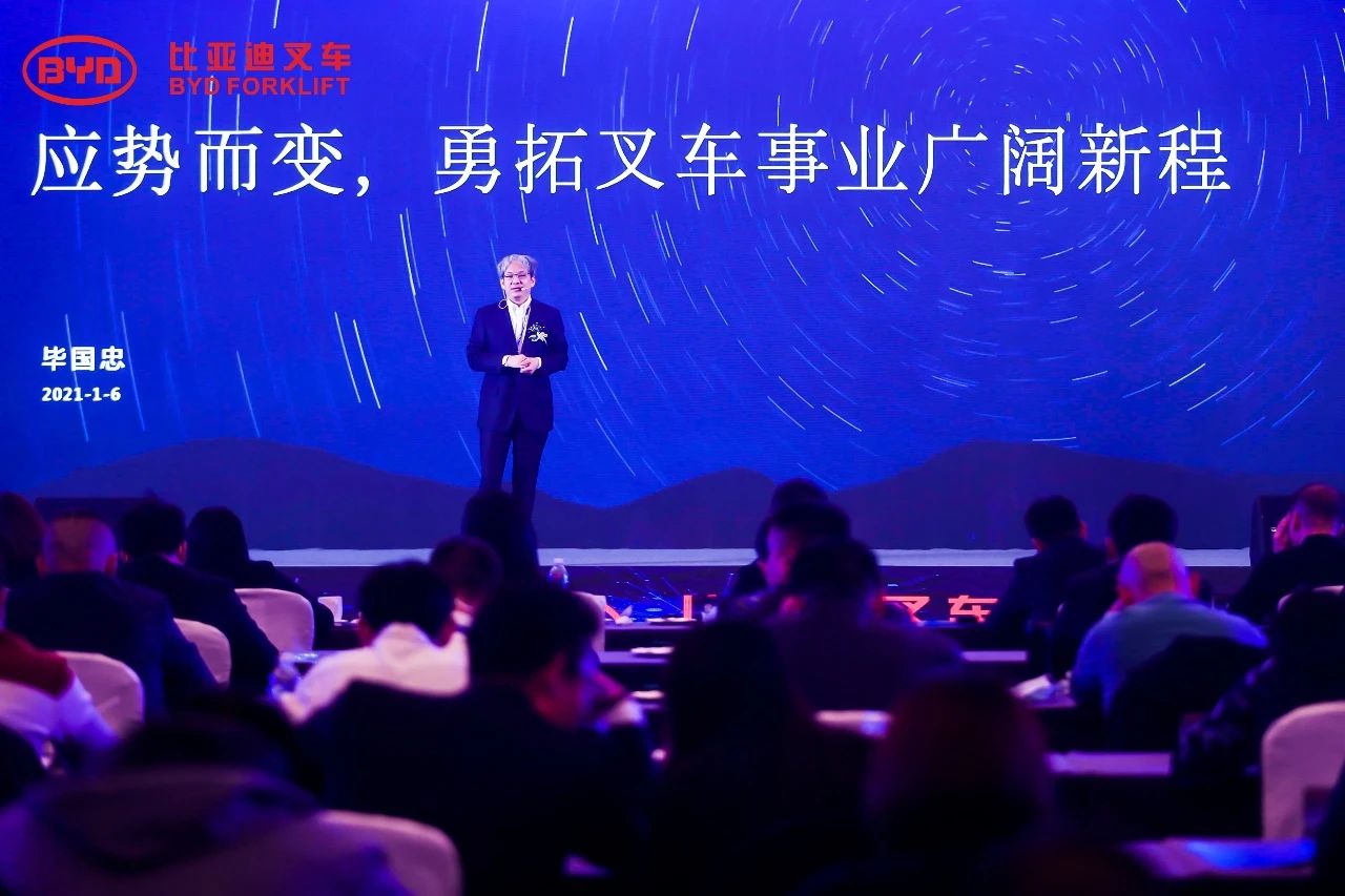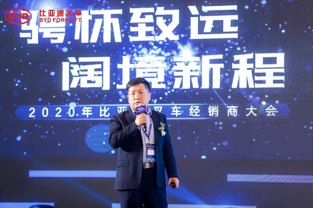 接下來(lái),由比亞迪叉車(chē)總經(jīng)理畢國(guó)忠先生致辭,畢總首先對(duì)在座嘉賓的蒞臨表示感謝,并指出2020年受疫情影響,對(duì)諸多行業(yè)來(lái)講都是較為艱難的一年,但比亞迪叉車(chē)在此種市場(chǎng)環(huán)境下,依然實(shí)現(xiàn)了逆勢(shì)增長(zhǎng),面對(duì)洶涌的浪潮和百變的形態(tài),我們依然堅(jiān)守于產(chǎn)品本身的價(jià)值。