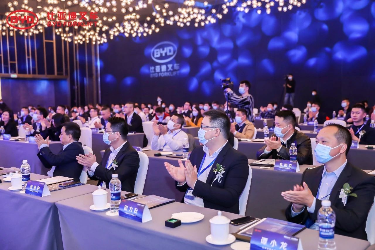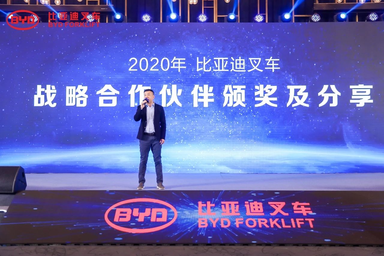 在獲獎(jiǎng)代表的發(fā)言中,也表示今后會(huì)繼續(xù)堅(jiān)定新能源叉車(chē)事業(yè)的信心,與比亞迪叉車(chē)一起同成長(zhǎng)、共進(jìn)退。