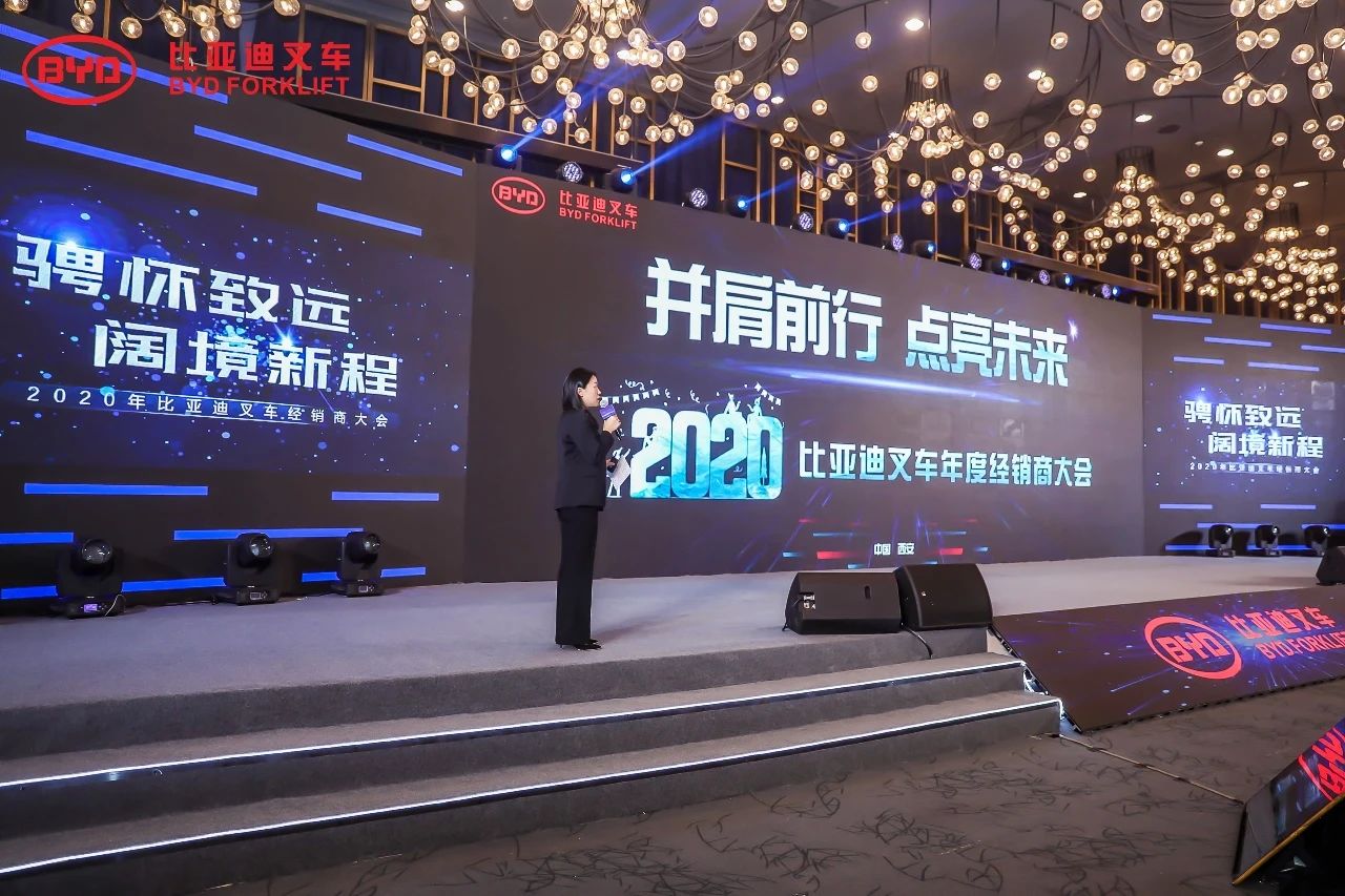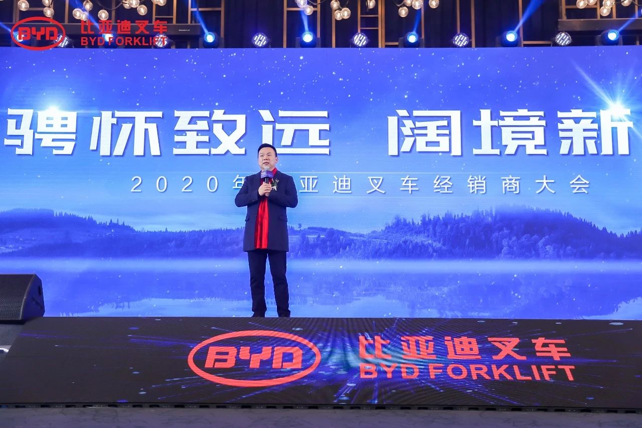 1月6日,以“騁懷致遠(yuǎn),闊境新程”為主題的2020年比亞迪叉車(chē)經(jīng)銷(xiāo)商大會(huì)在陜西西安隆重召開(kāi)。比亞迪叉車(chē)總經(jīng)理畢國(guó)忠先生與事業(yè)部各高層領(lǐng)導(dǎo),以及全國(guó)各地的杰出經(jīng)銷(xiāo)商代表、行業(yè)協(xié)會(huì)、媒體朋友們歡聚一堂,共同分享喜悅、見(jiàn)證榮耀,展望新能源叉車(chē)的未來(lái)發(fā)展宏圖。