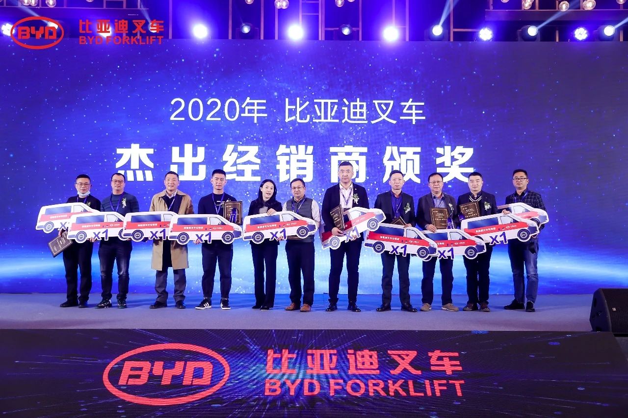 大會(huì)同時(shí)頒發(fā)了非凡營(yíng)銷(xiāo)獎(jiǎng)、卓越經(jīng)銷(xiāo)商獎(jiǎng)項(xiàng),也對(duì)在2020年銷(xiāo)售業(yè)績(jī)表現(xiàn)突出的經(jīng)銷(xiāo)商進(jìn)行了獎(jiǎng)勵(lì),以感謝他們對(duì)比亞迪叉車(chē)發(fā)展做出的杰出貢獻(xiàn)。